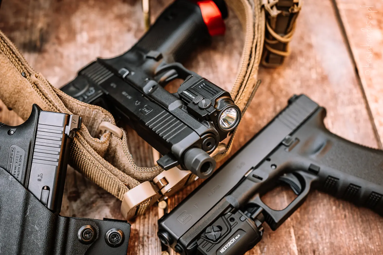 • kabury dedykowane Glockom – pokazując ich mocowanie, profil, zabezpieczenia,