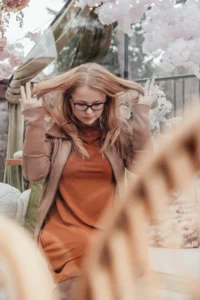 Minisesja boho kobieta z rudymi włosami w szklarni kolory ziemi
